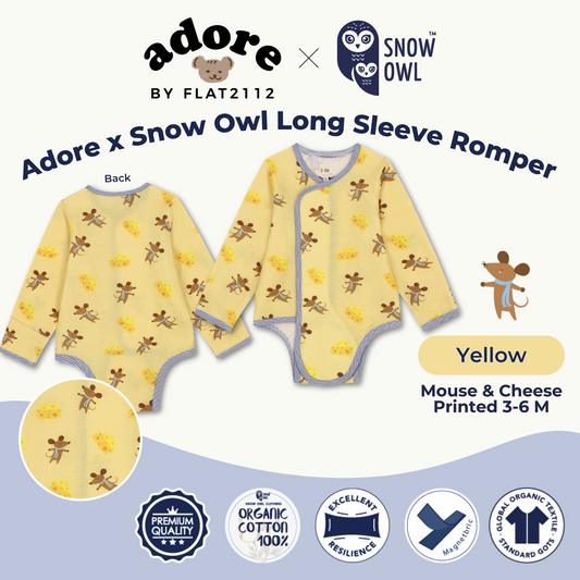 Adore x Snow Owl Long Sleeve Romper - Mouse & Cheese Printed Yellow 3-6 M