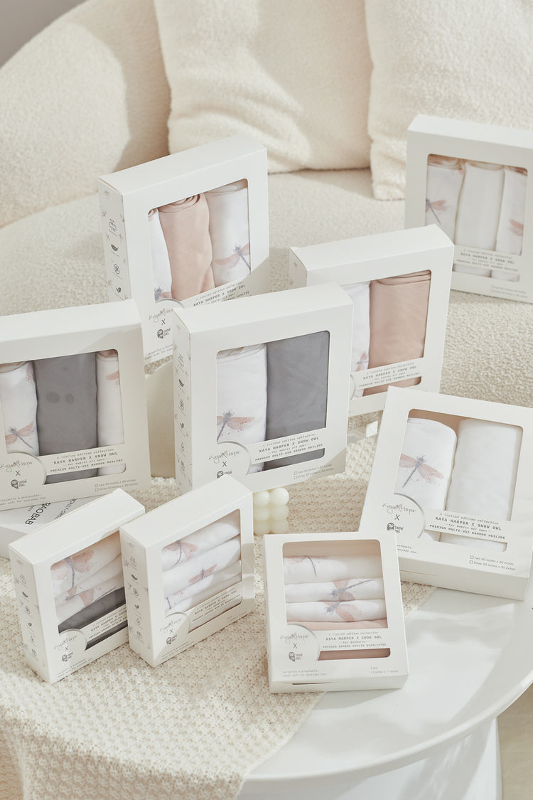 Snow Owl Bamboo Washcloth Kaya Harper 11x11 Pack of 6 - Dragonfly Gray