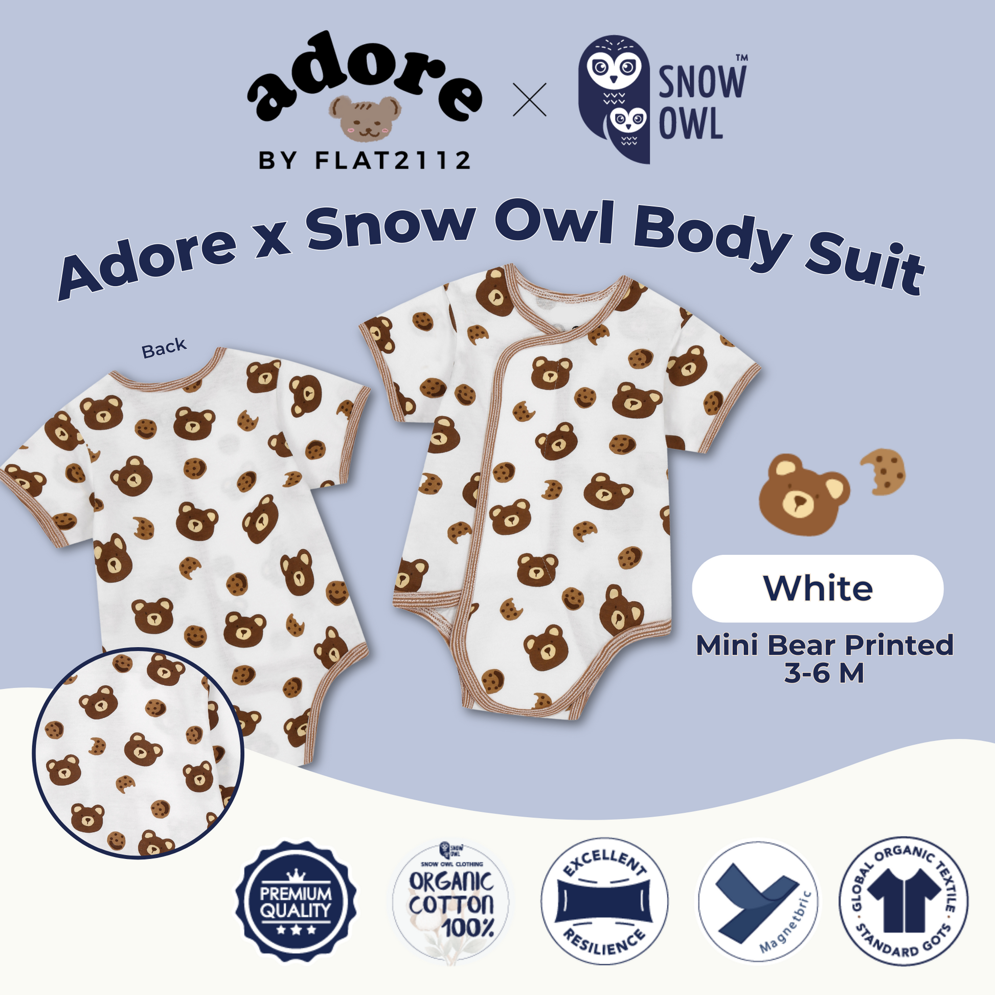 Adore x Snow Owl Body Suit - Mini Bear Printed White 3-6 M